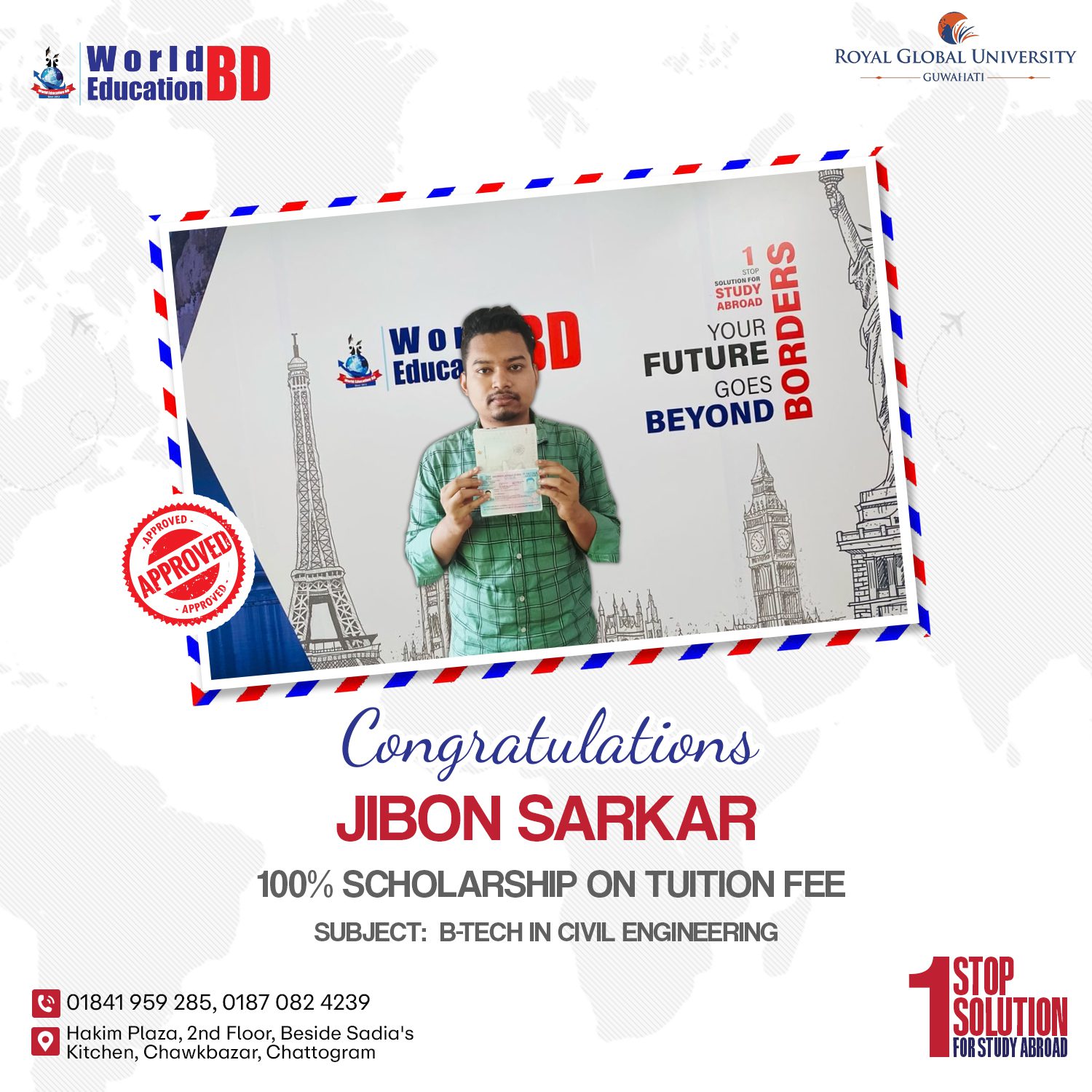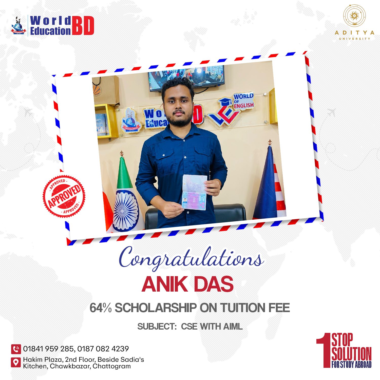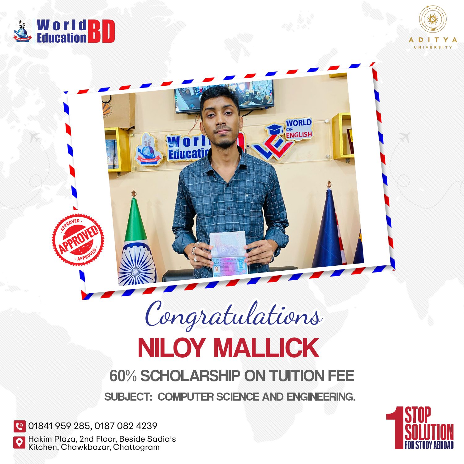 আর অপেক্ষা নয়! ভারতের সেরা ইঞ্জিনিয়ারিং বিশ্ববিদ্যালয়ে ভর্তির সুযোগ এখন আপনার শহরেই। আগামী ২৪ মে থেকে ২৭ মে ২০২৫, সকাল ১০টা থেকে বিকেল ৫টা পর্যন্ত ওয়ার্ল্ড এডুকেশনবিডি, চকবাজারে (চট্টগ্রাম) উপস্থিত থাকবেন আদিত্য ইউনিভার্সিটির ইন্টারন্যাশনাল অ্যাডমিশন ম্যানেজার। আপনার উচ্চশিক্ষার স্বপ্ন পূরণে জানুন সরাসরি ভর্তি প্রক্রিয়া, অবিশ্বাস্য স্কলারশিপের সুযোগ (৬০% পর্যন্ত!) এবং প্রতিনিধির মূল্যবান পরামর্শ। এই সুযোগ […]